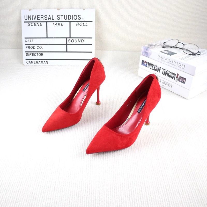 15春秋季新款撤柜酒杯高跟尖头浅口绒面法式气质性感宴会女鞋婚鞋