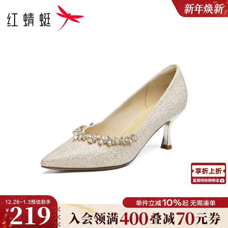 红蜻蜓香槟色主婚鞋高跟鞋女2025新款女鞋旗袍鞋子婚纱照订婚单鞋