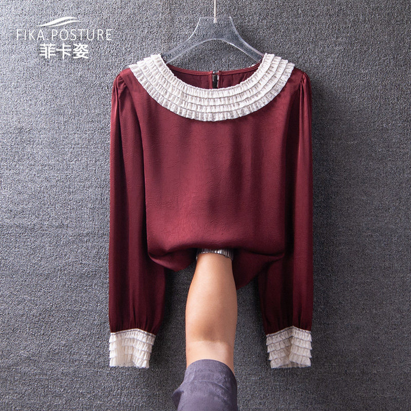 法式宫廷蕾丝打底衫女长袖雪纺衬衣秋冬新款内搭遮肉大码女装上衣