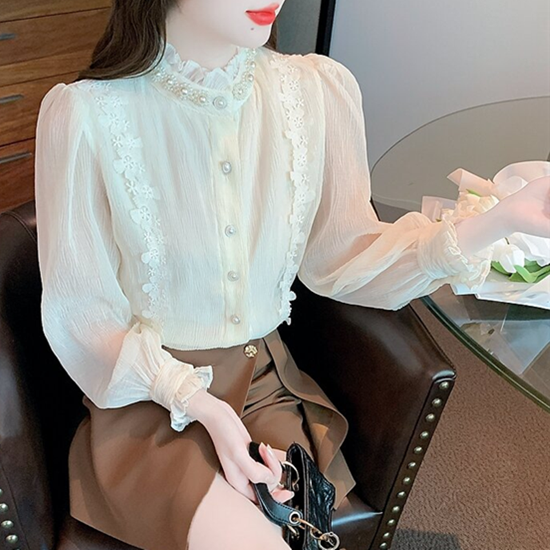 蕾丝衬衫长袖衬衣早秋冬季2025年新款女士雪纺法式上衣打底内搭春