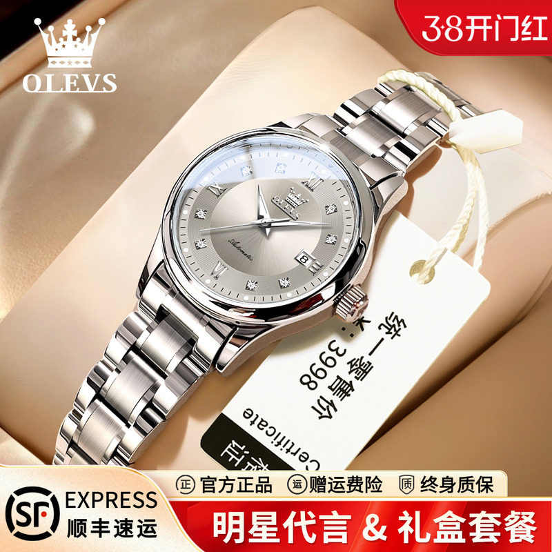 OLEVS欧利时 瑞士机械手表轻奢自动机械机芯防水夜光钢带机械腕表