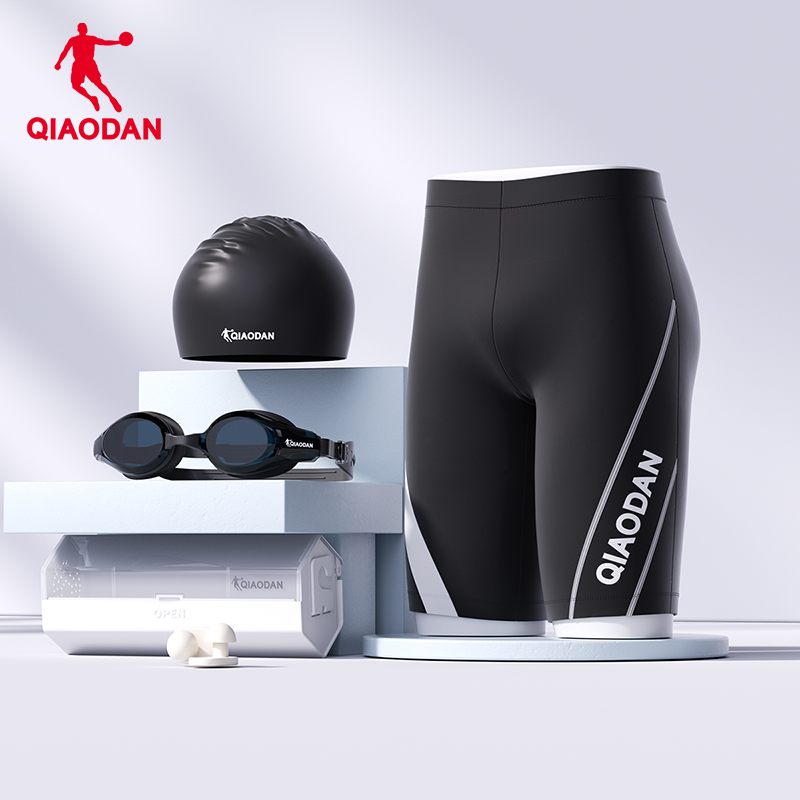 特步沙滩泳裤男防尴尬男士宽松泳衣泳帽泳镜套装男款大码游泳装备