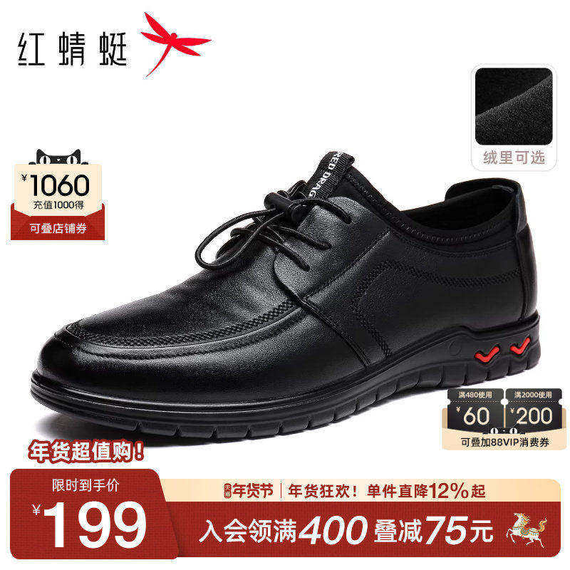 红蜻蜓男鞋秋冬新款真皮商务休闲皮鞋男软底男士皮鞋中老年爸爸鞋