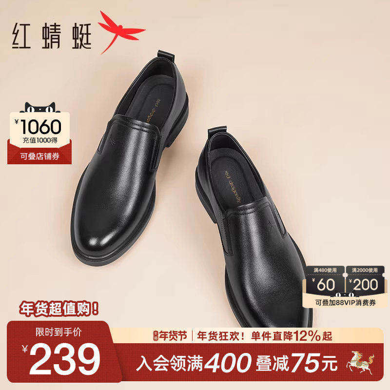 红蜻蜓男鞋商务休闲皮鞋男士职场通勤真皮轻便一脚蹬中老年爸爸鞋