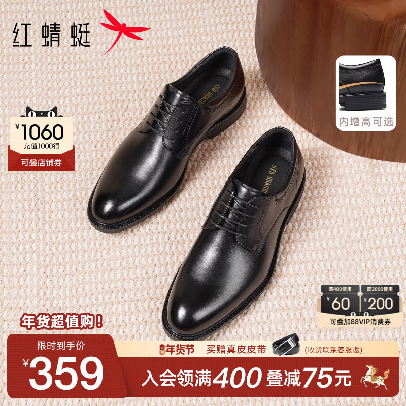 红蜻蜓正装皮鞋2025秋冬新款商务真皮男鞋厚底增高结婚新郎鞋男士