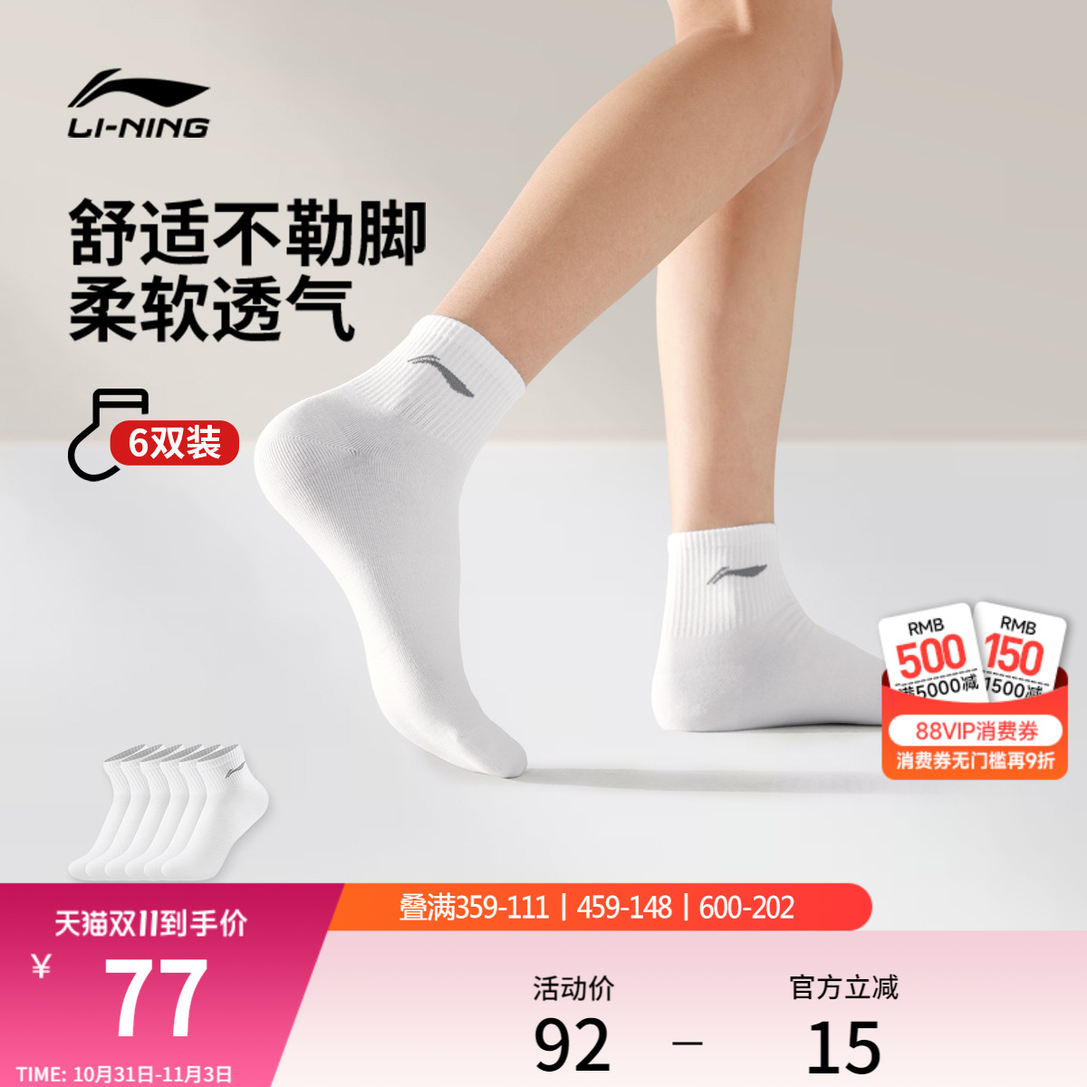 李宁短筒短袜男女士官方正品2025新款健身出行百搭六双装运动袜子