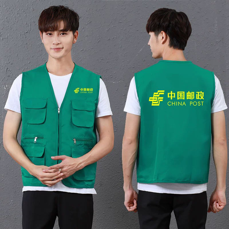 中国邮政工作服马甲EMS速递物流快递定制网眼透气反光背心印字log