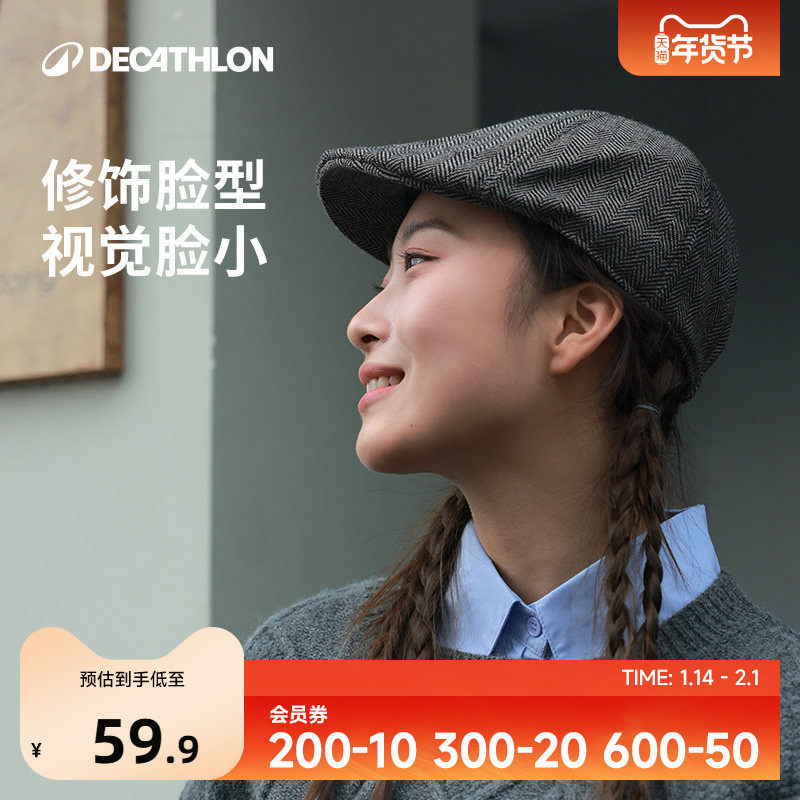 迪卡侬户外帽子男女复古贝雷帽平顶帽前进帽扁平头文艺144528OVHU