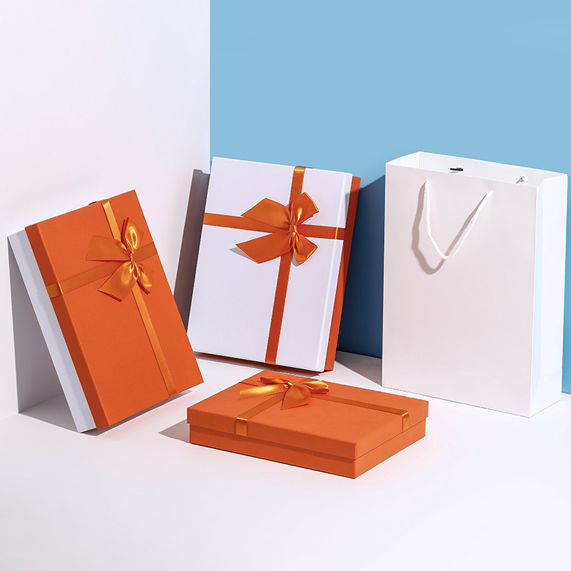 礼品盒空盒长方形礼盒橙色包装盒简约创意大号生日礼物盒定制logo