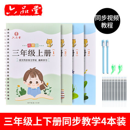 人教版 语文3年级上下册 小学生字帖 名师范字同步凹槽练字板 小学生凹槽练字板 送教学视频 送练字笔