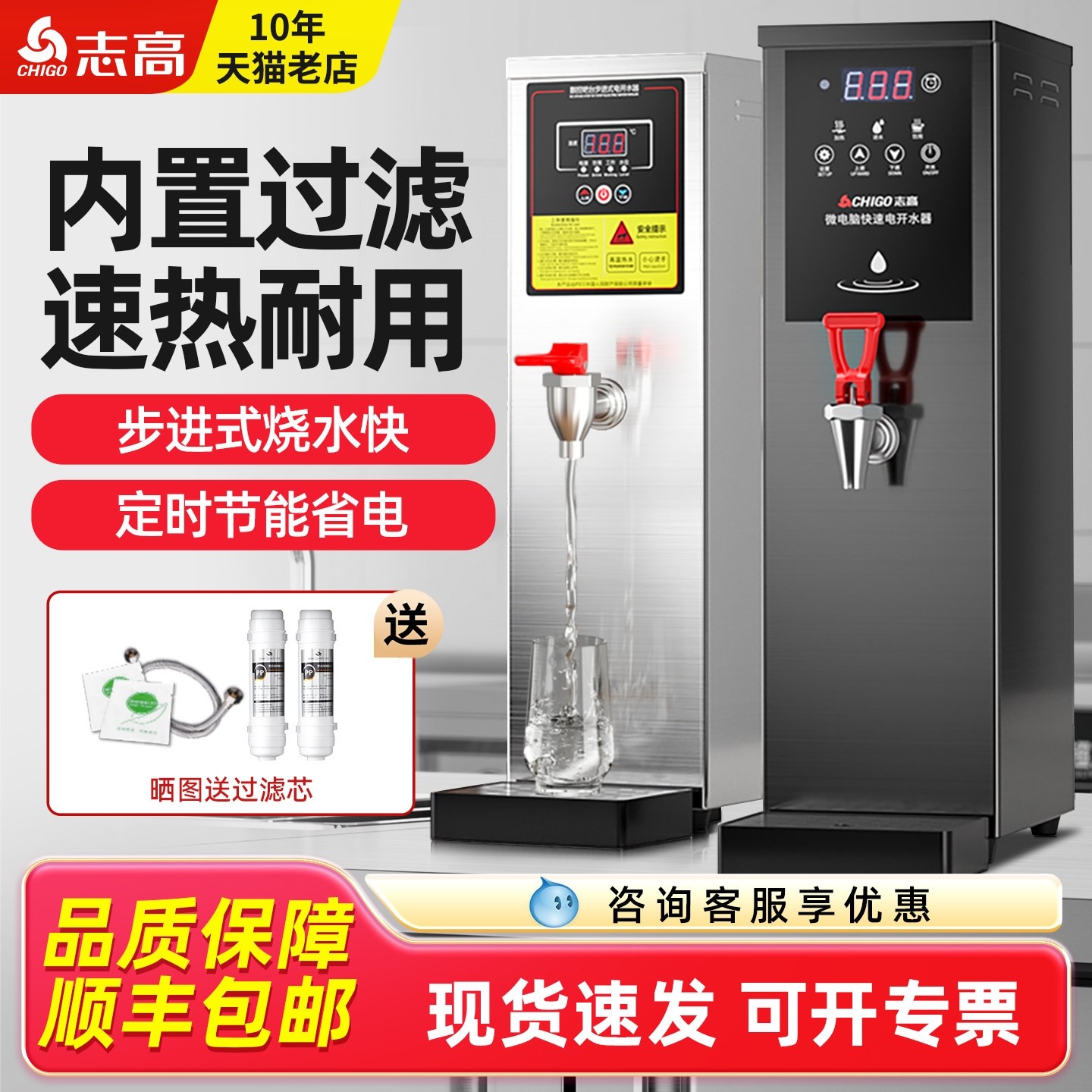 志高步进式开水机商用开水器咖啡奶茶店吧台热水器过滤净水烧水器