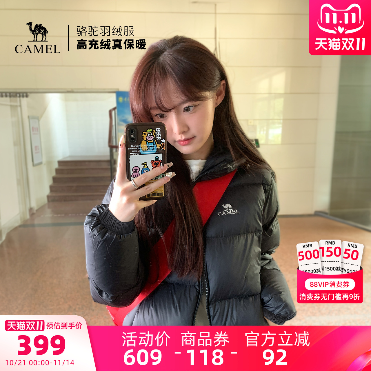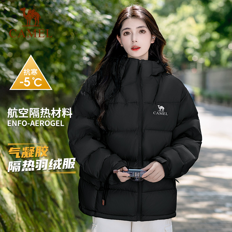 骆驼女装短款羽绒服冬季男女同款保暖加厚防风连帽面包服羽绒外套