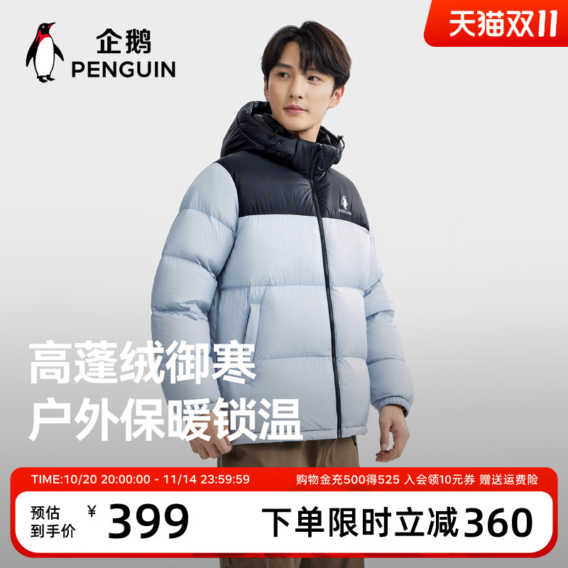 企鹅雪泡芙羽绒服男女25新款户外防风加厚短款连帽蓝色面包服外套
