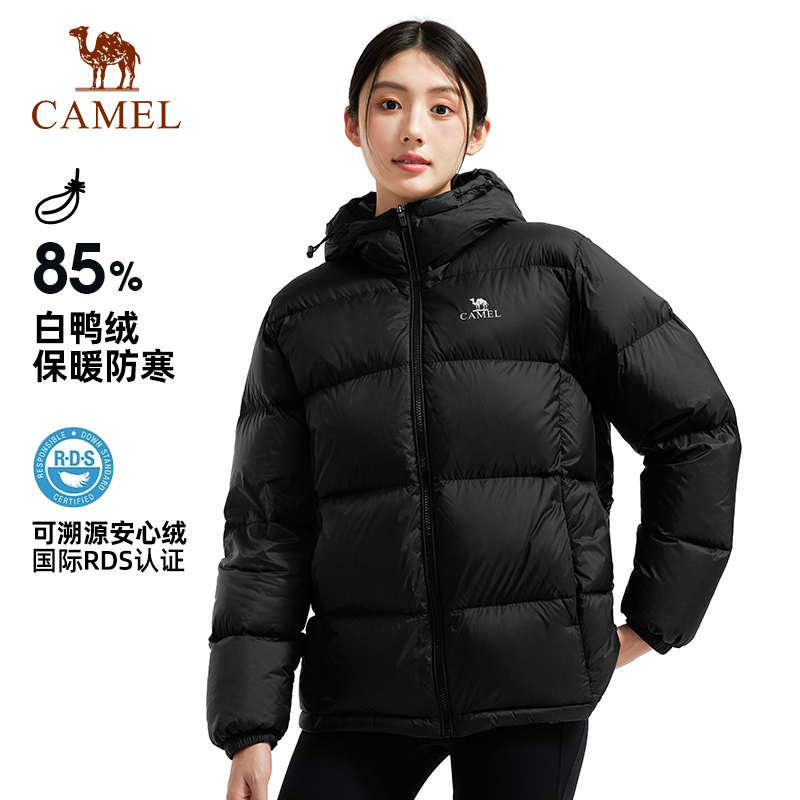 骆驼黑钻5PLUS短款羽绒服男女款秋冬季加厚保暖外套连帽面包服