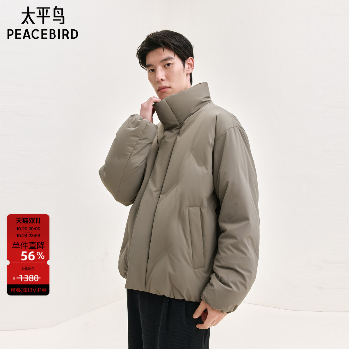 太平鸟男装宽松面包服男短款23冬季潮流廓形羽绒服外套BWACD4259