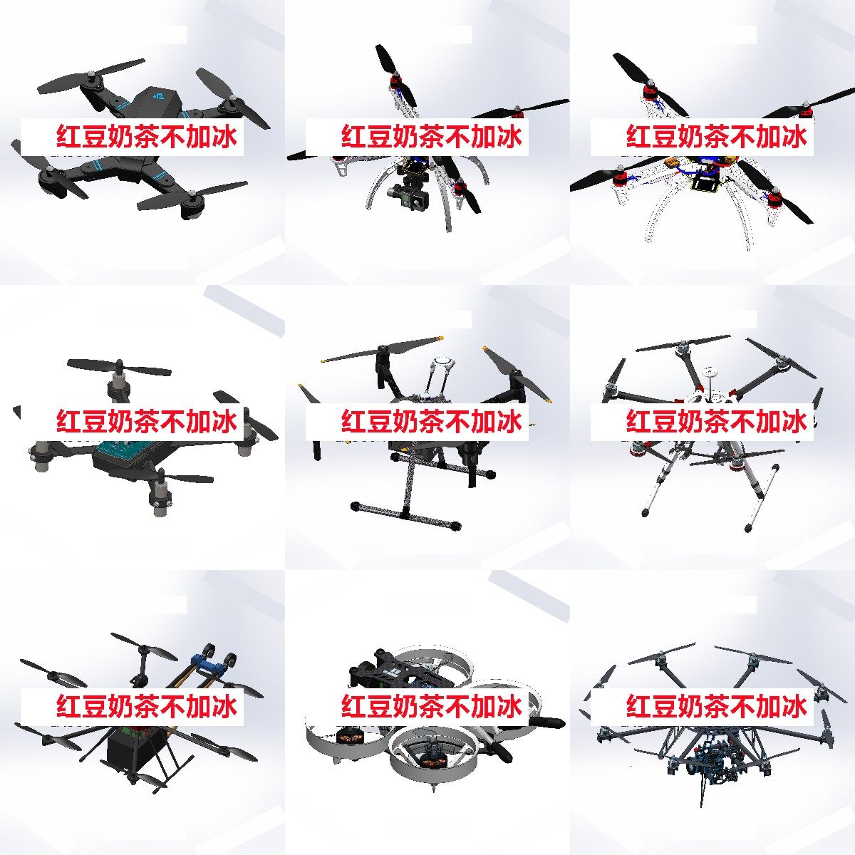 65套无人机3d图纸四轴/六轴旋翼植保机航拍飞行器SW建模设计模型
