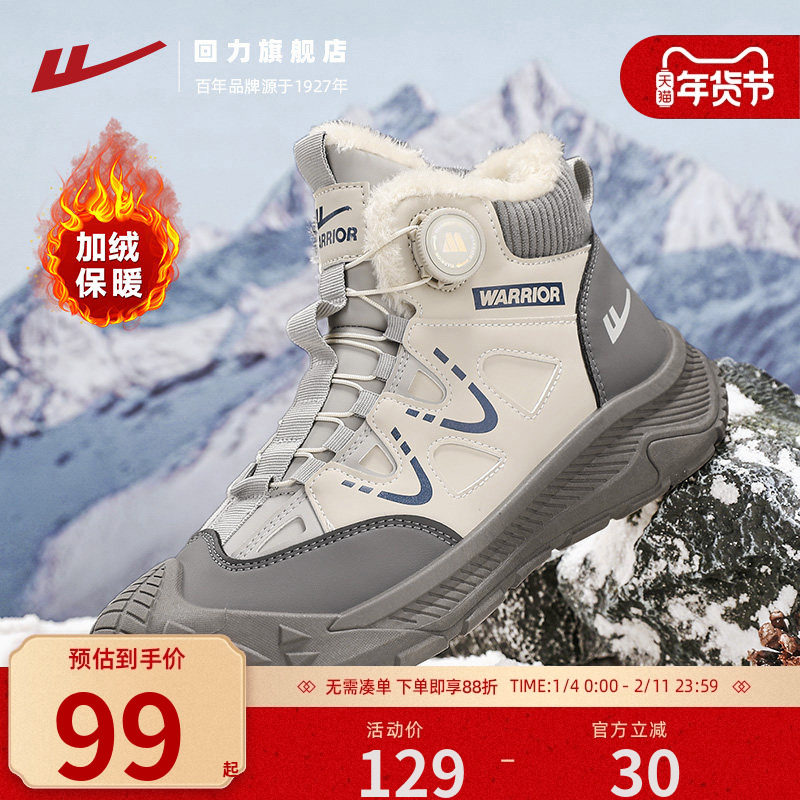 回力男鞋加绒雪地靴棉鞋2025秋冬季高帮户外登山鞋男士工装马丁靴