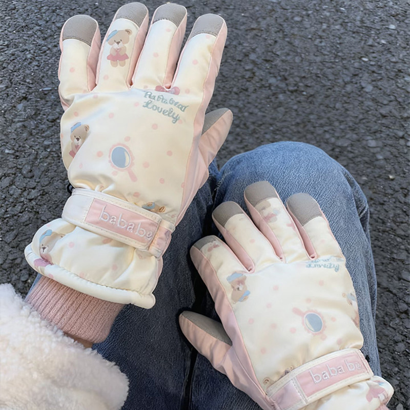 滑雪手套女冬季加绒加厚保暖棉防寒防风防水可触屏摩托车骑行手套