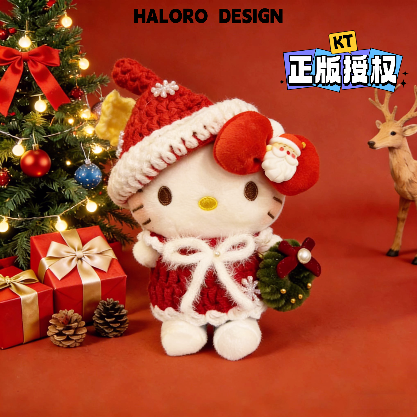 正版HelloKitty圣诞节毛绒包挂件KT猫可爱公仔挂饰钥匙扣节日礼物