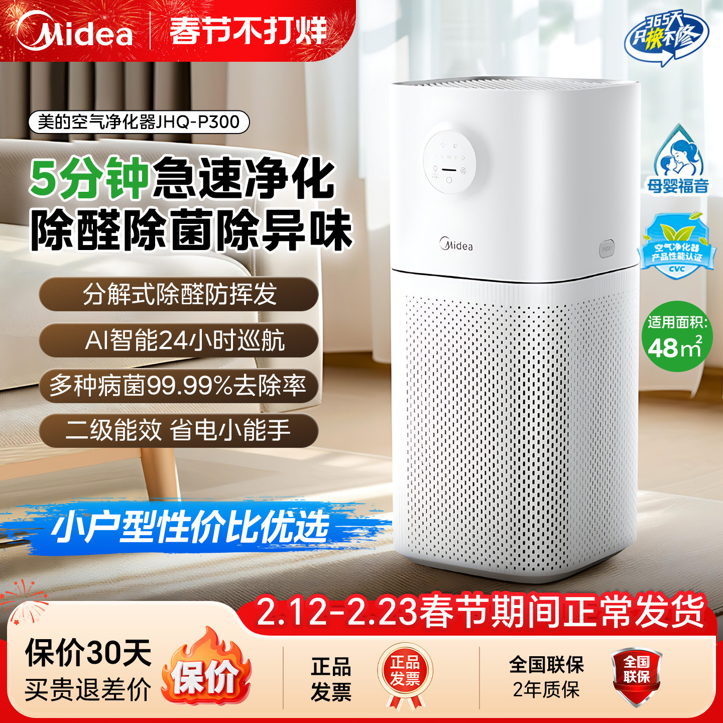 - 美的空气净化器 家用 除甲醛