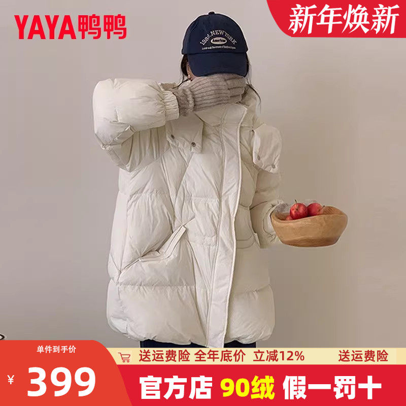 鸭鸭品牌韩版2024年冬季新款立领中长款羽绒服女加厚宽松休闲直筒