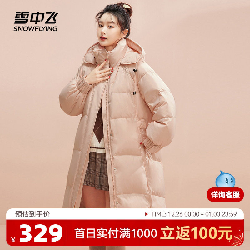 雪中飞2025秋冬新款女士长款连帽羽绒服韩版纯色简约休闲宽松加厚