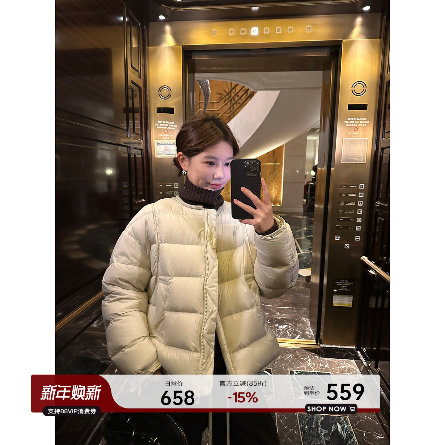 YANGLE_短款羽绒服女2025年冬季新款韩版宽松休闲圆领白鸭绒外套