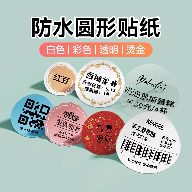 精臣B1标签打印机小型月饼口味贴新年封口贴透明圆形商标logo奶茶咖啡食品日期打码机圆点不干胶二维码贴纸