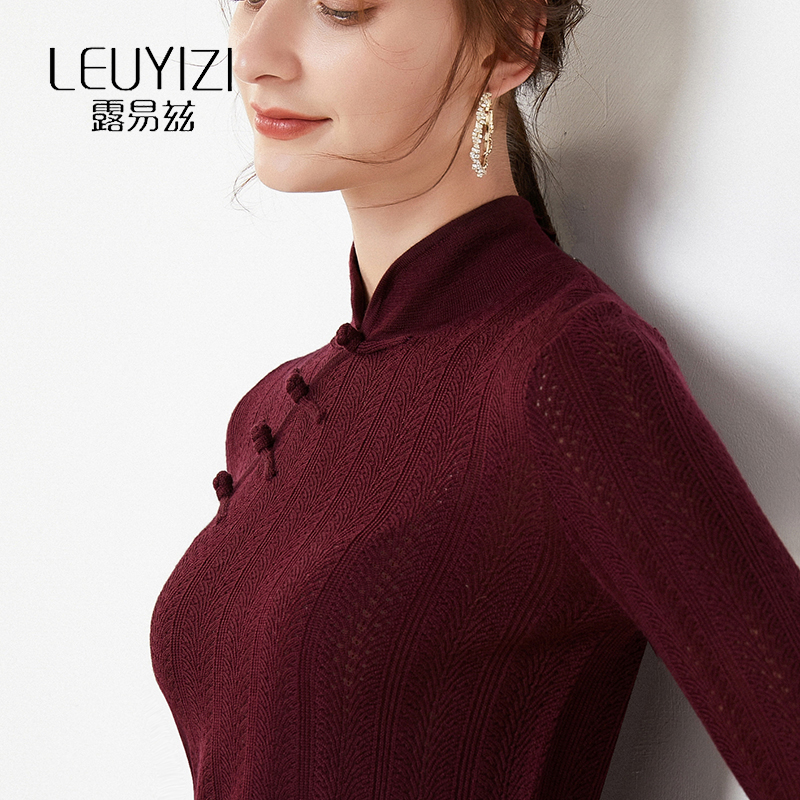 旗袍针织上衣女中国风气质优雅镂空2024秋冬新款羊毛针织衫毛衣女