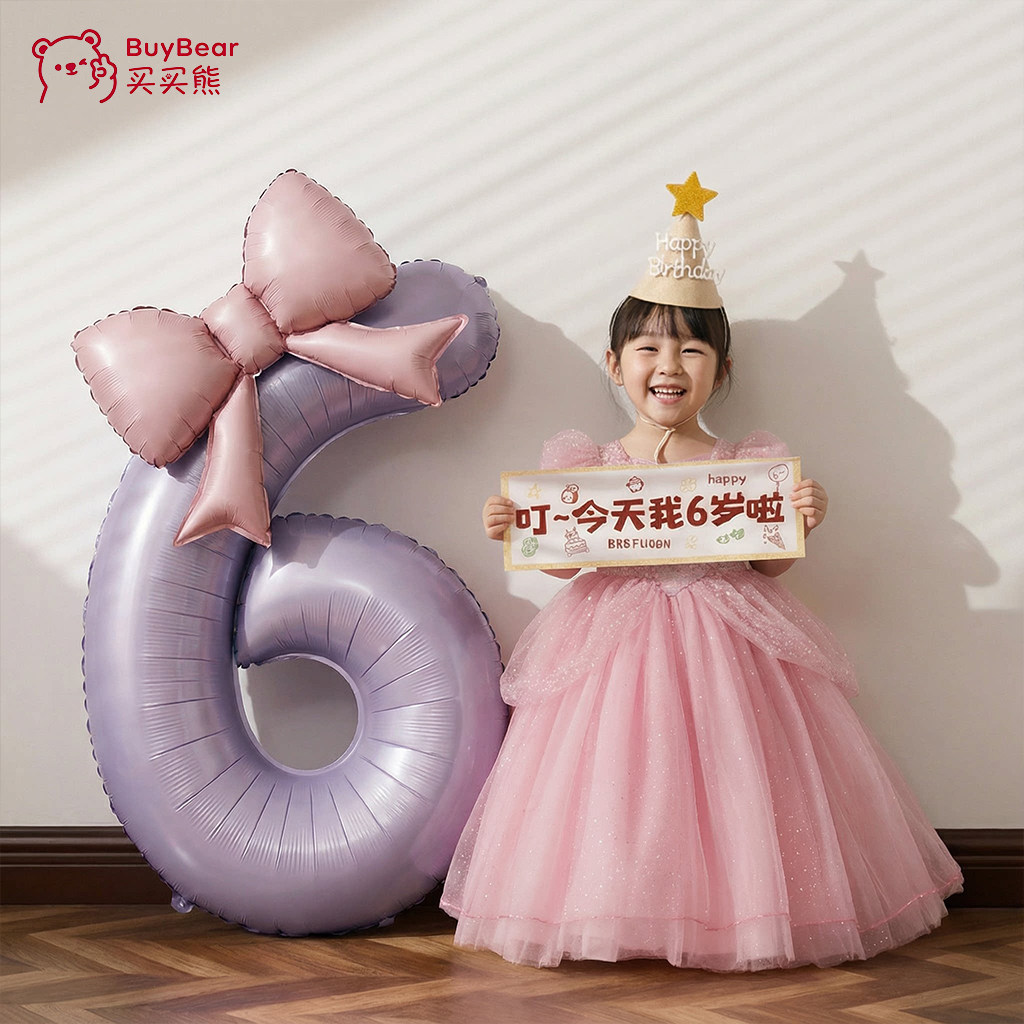 小女孩生日布置场景装饰女童数字气球儿童6岁快乐仪式感5拍照道具