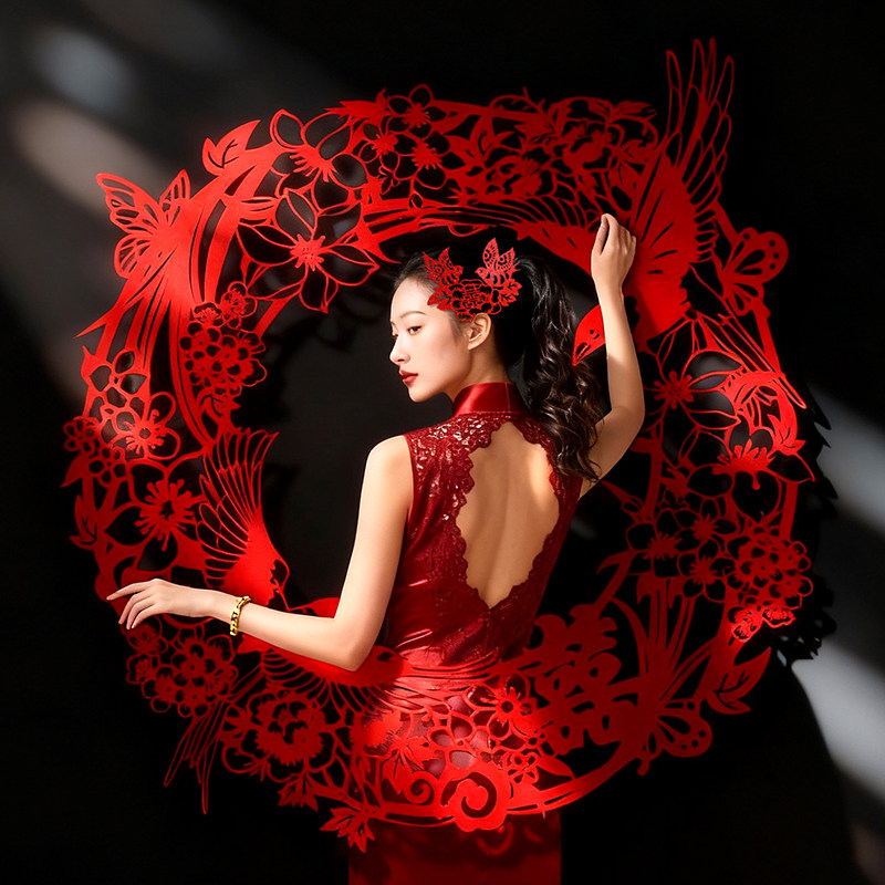 婚礼晨袍拍照道具结婚房布置装饰剪纸舞龙新娘接亲小游戏新年纸龙