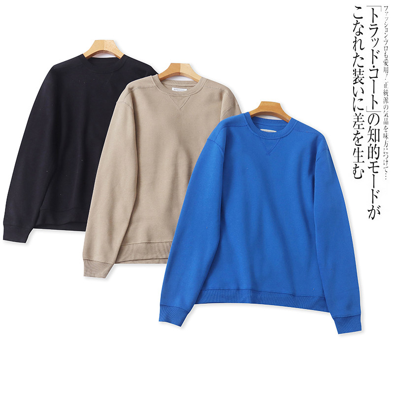 重磅纯棉男士圆领卫衣加绒纯色多色休闲宽松百搭情侣装打底衫上衣