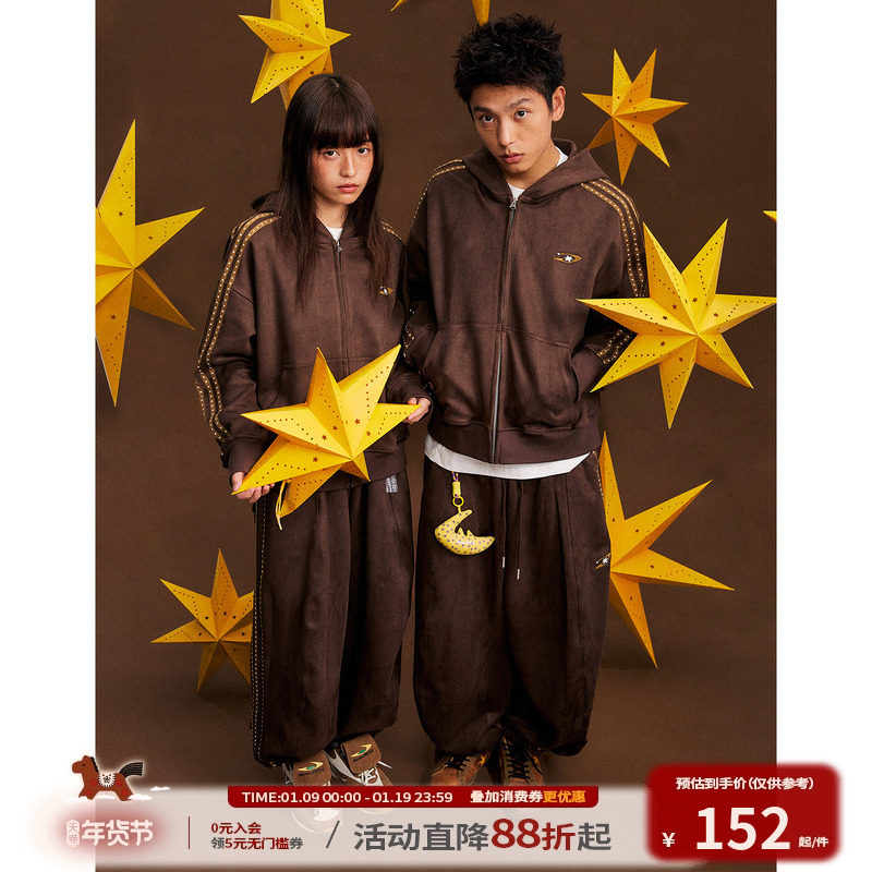 江南先生NewJNXS星宇宙仿麂皮星星织带宽松卫衣裤子休闲情侣套装