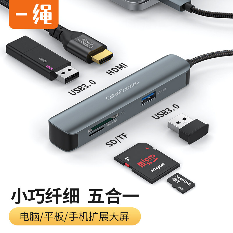 type-c转hdmi扩展坞5合1USB3.0 HUB集线器4K雷电3Micro/SD读卡器