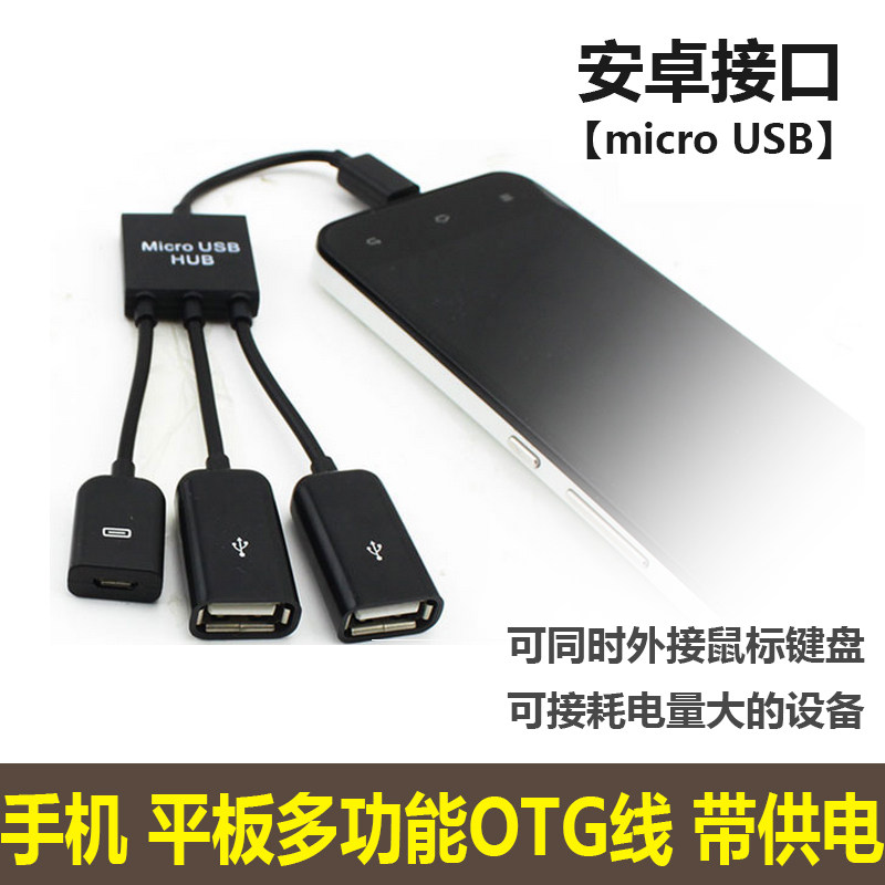 带供电Micro USB OTG数据线HUB安卓手机连接鼠标键盘U盘分集线器