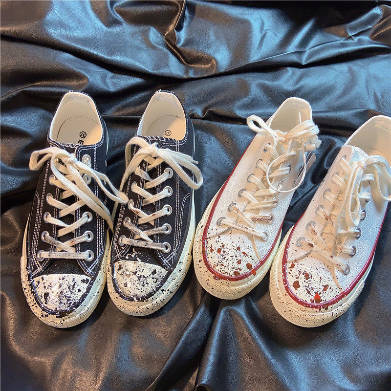 2020新品涂鸦手绘鞋女学生ulzzang泼墨香芋紫1970s低帮帆布鞋夏