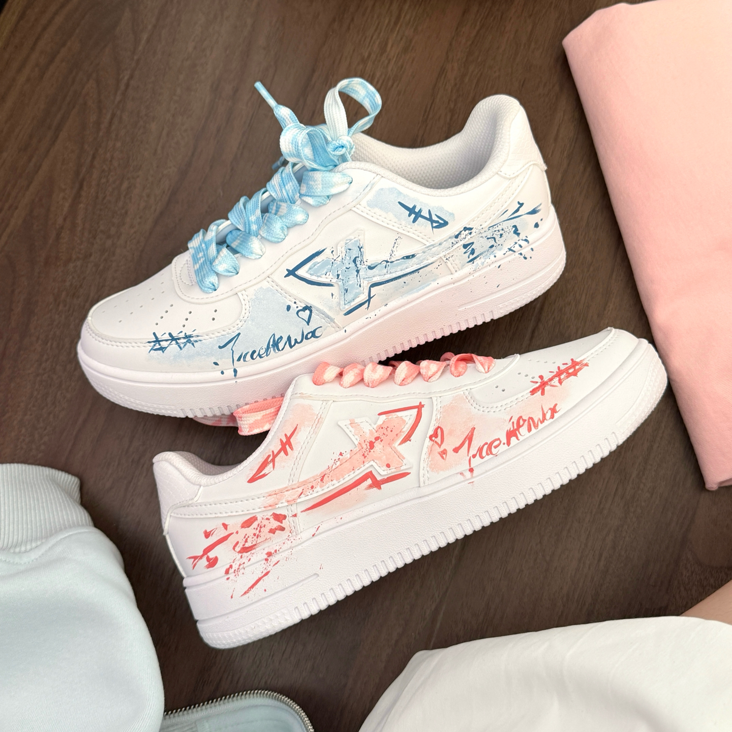 【定制球鞋】特步空军一号知晚鸳鸯配色时尚潮流手绘情侣个性板鞋
