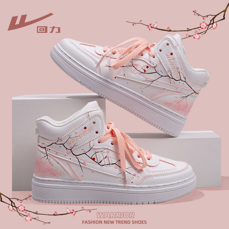 回力高帮板鞋女鞋男鞋浪漫樱花手绘鞋情侣鞋运动鞋学生春季小白鞋