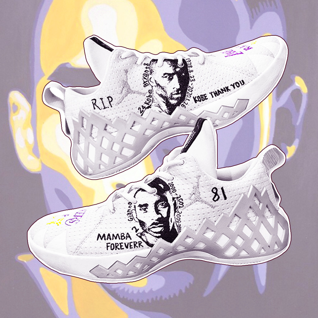 HP手绘鞋科比kobe篮球鞋定制DIY黑白aj1NBA球星空一AF1涂鸦彩绘画