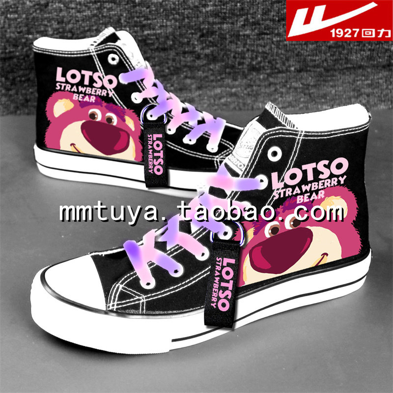 2025春季回力帆布鞋联名草莓熊周边涂鸦手绘鞋男女学生爆改潮板鞋