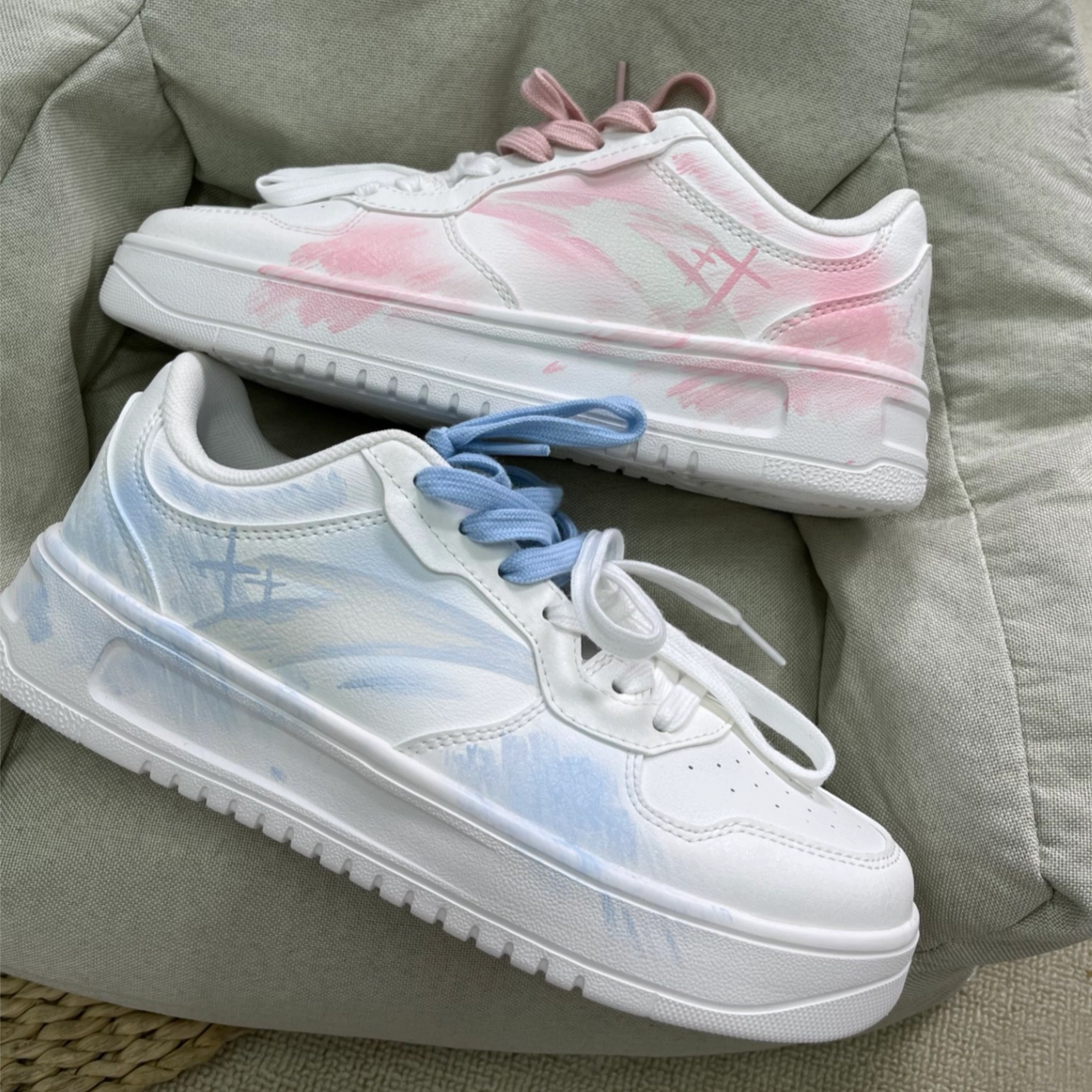 35-40巨好穿丑萌宽头手绘鞋春秋低帮系带女鞋运动休闲软底鞋