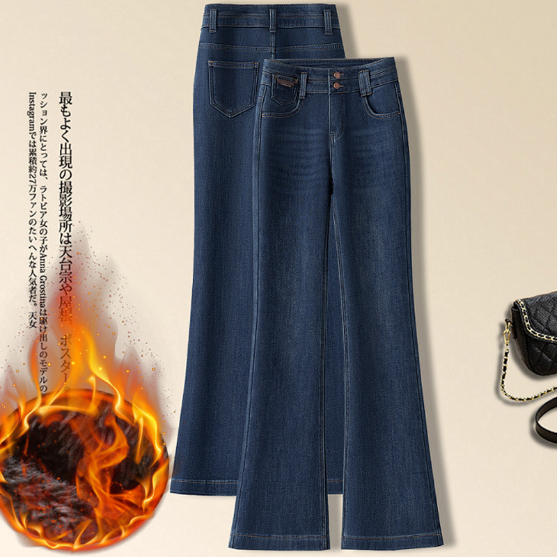 冬季加绒微喇牛仔长裤女黑色高腰修身显瘦柔软保暖棉弹性优雅直筒