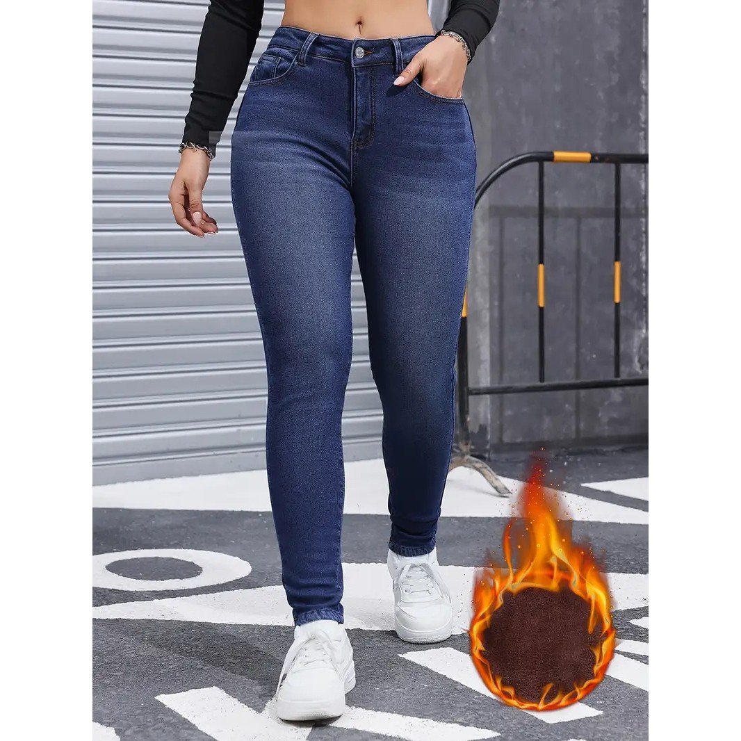 2025跨境专供亚马逊独立站新款秋冬加绒女装弹性紧身小脚牛仔裤