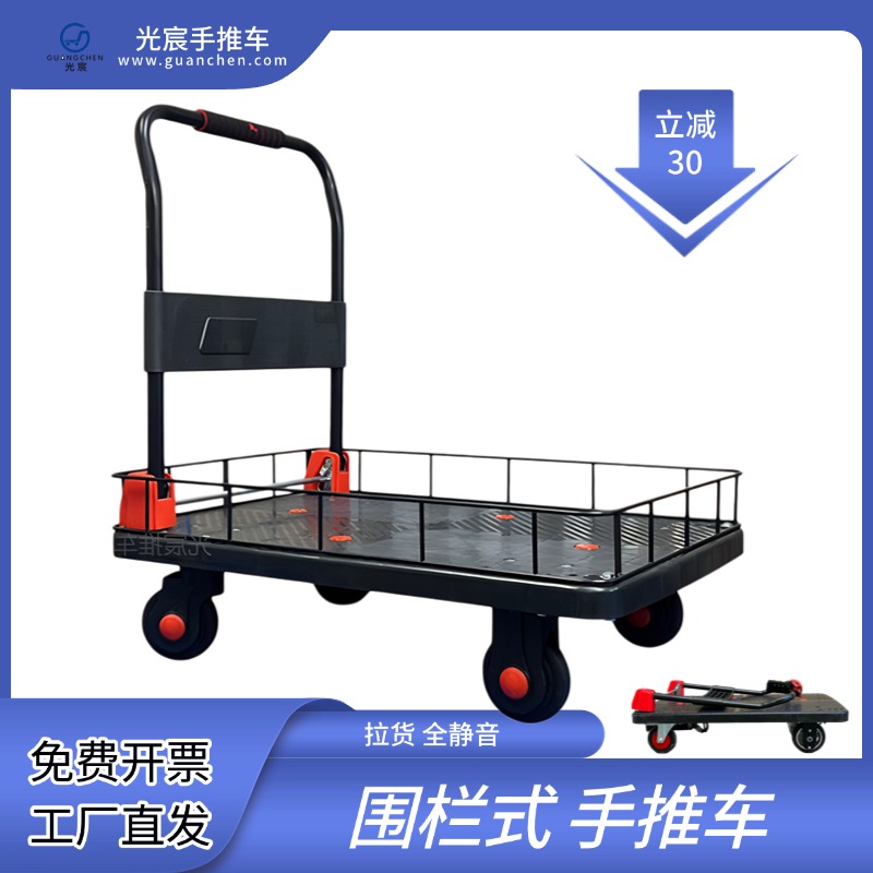 围栏小推车拉货平板车搬运车带护栏静音手推车家用折叠拖车小拉车