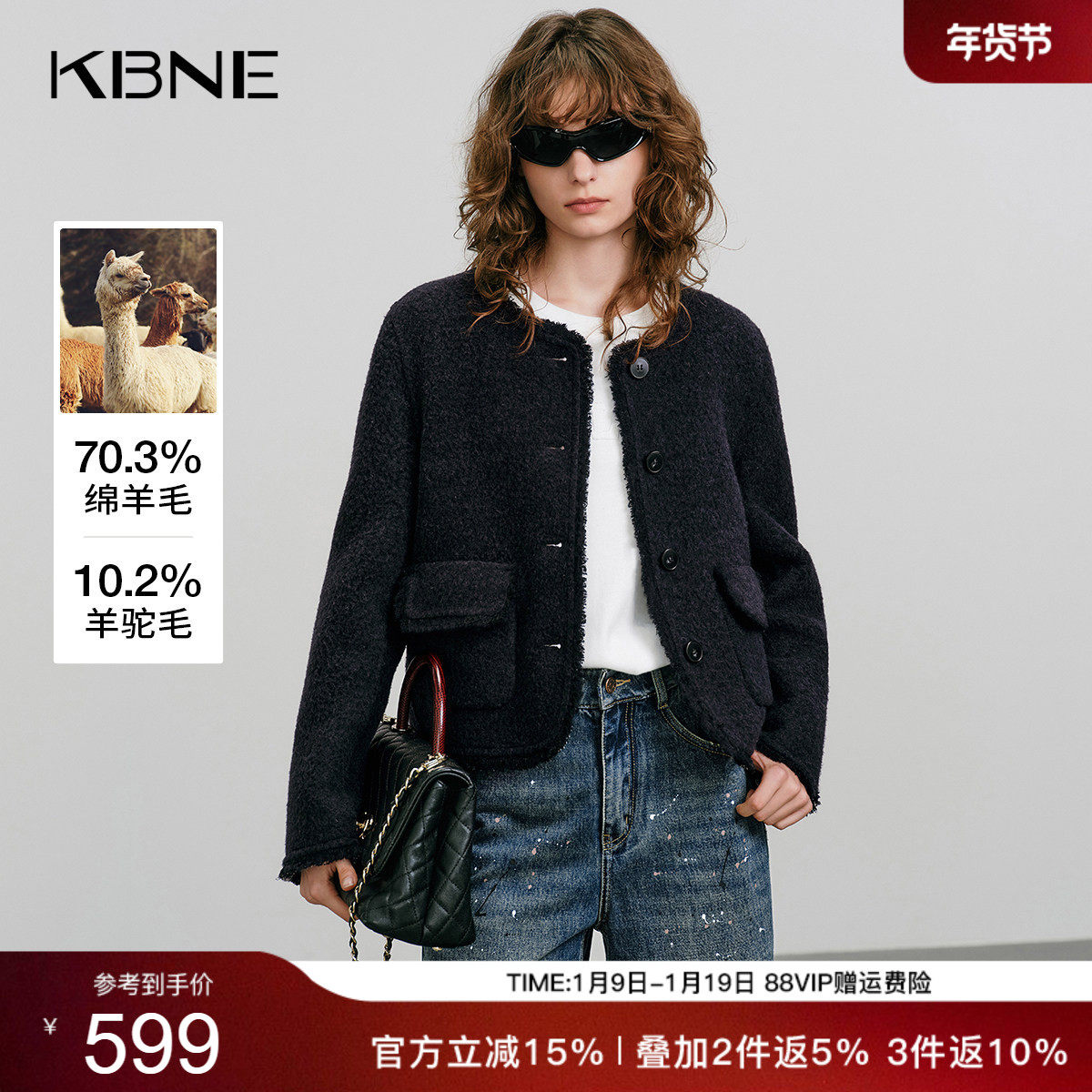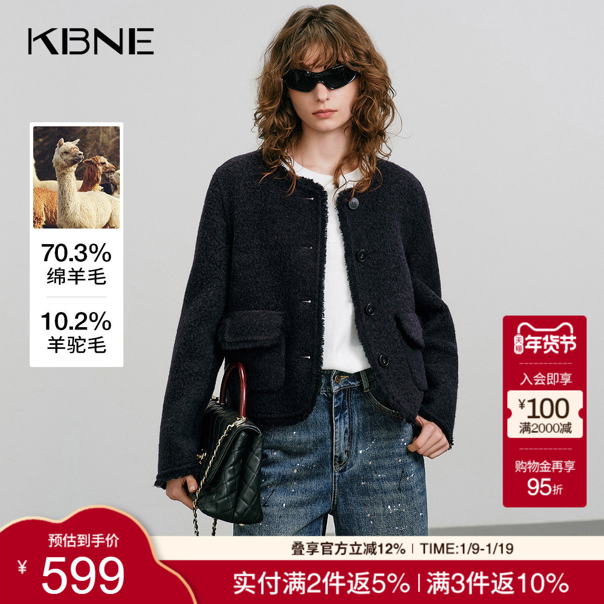 KBNE奢感羊驼毛复古小香风毛呢外套女装2025冬季新款短款呢子外套
