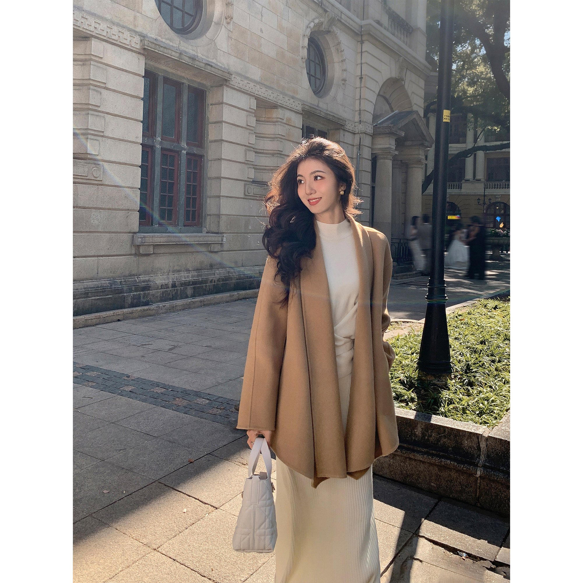 - 白色呢大衣女