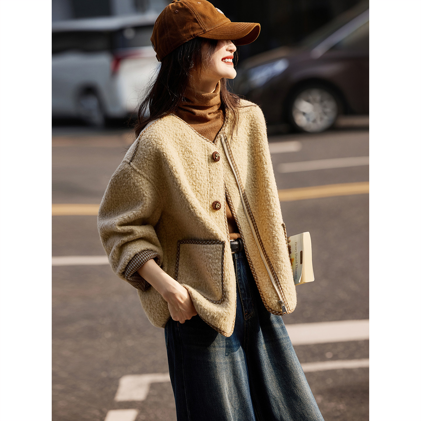 仿羊羔毛短款呢子外套2025年冬季新款女装上衣SXN25043
