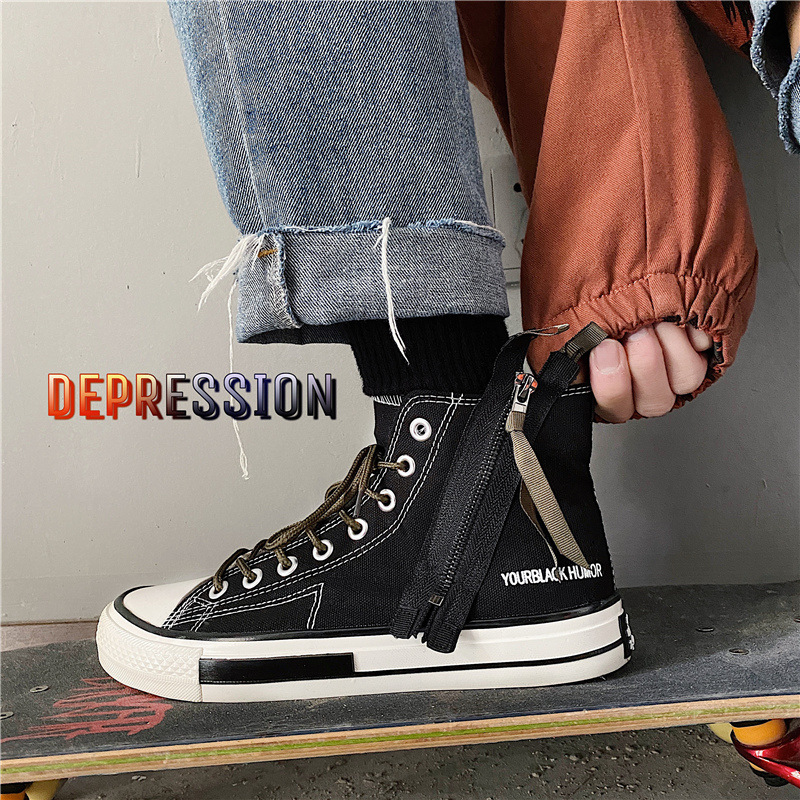 拉链高帮帆布鞋男学生韩版潮流复古原宿ulzzang休闲女ins板鞋