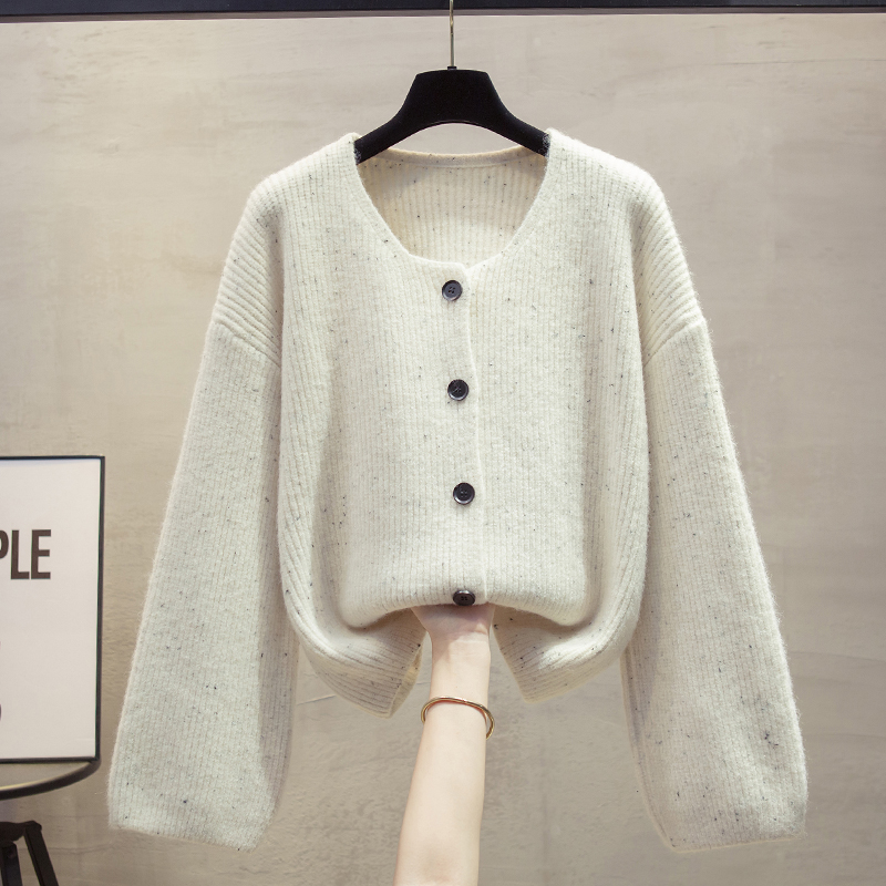 韩系慵懒风软糯灯笼袖毛衣开衫女秋冬季新款宽松针织外套漂亮上衣
