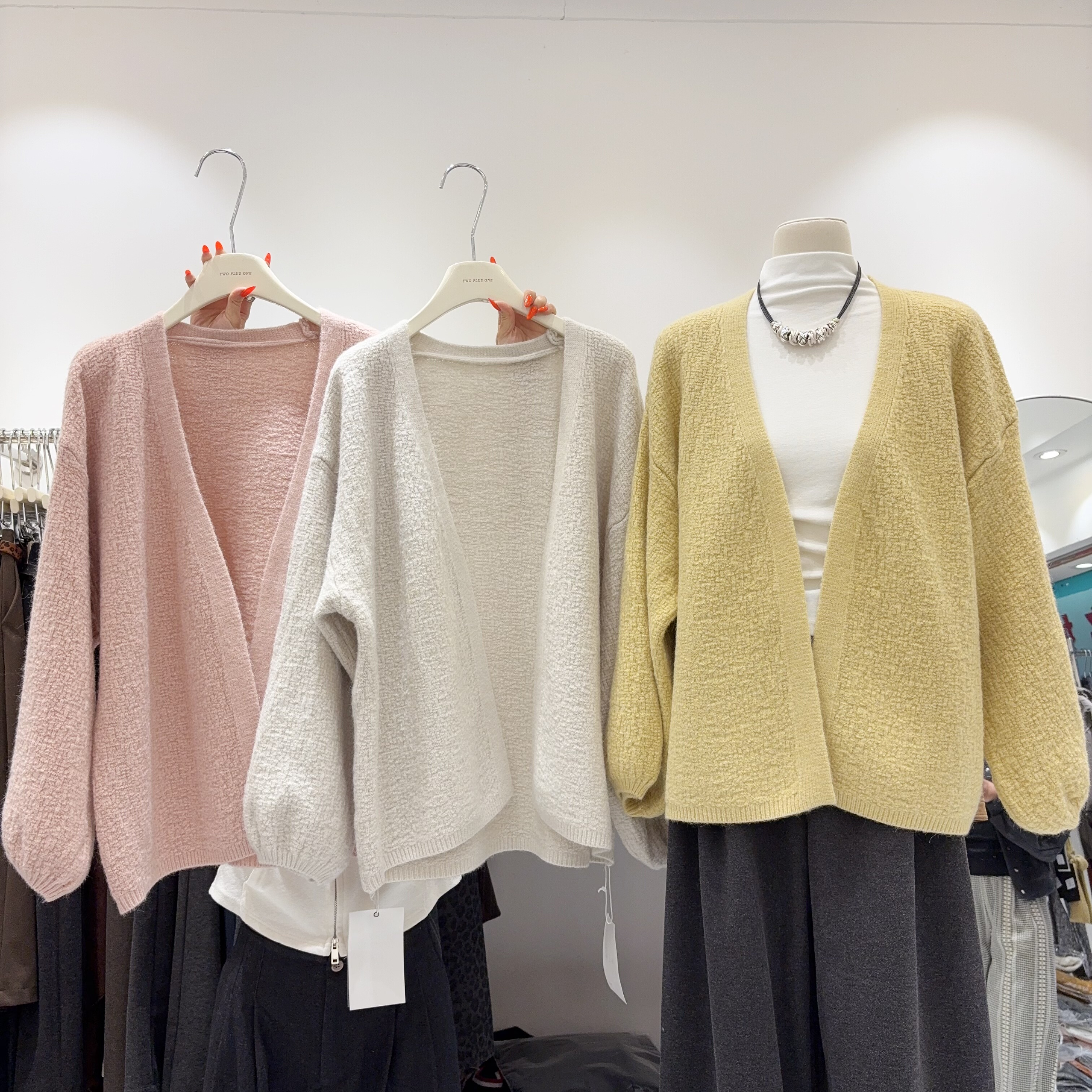 细米定制韩系慵懒灯笼袖无扣针织开衫女宽松百搭显瘦毛衣秋季外套